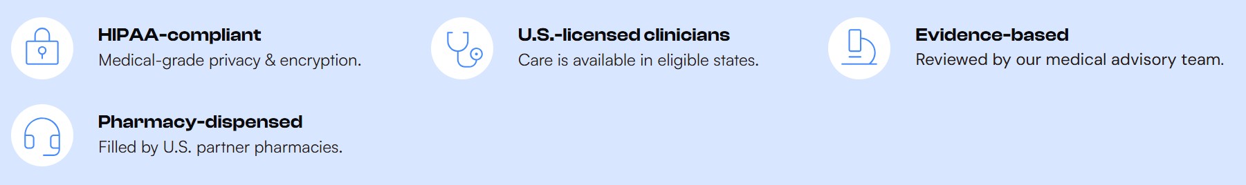 Prescription required • U.S.-licensed clinicians • Pharmacy-dispensed. Eligibility determined by a clinician. Not available in all states.
